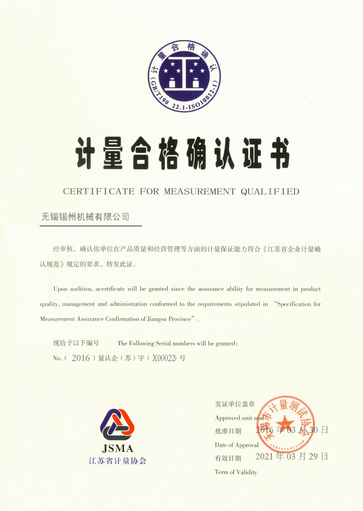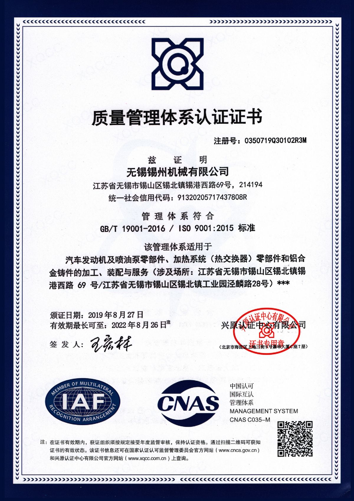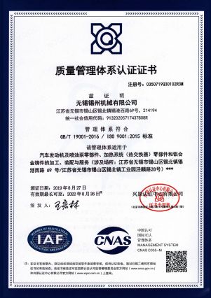 “ 以質(zhì)量求生存,以管理增效益”是錫州機(jī)械堅(jiān)定不渝的經(jīng)營(yíng)理念;“質(zhì)量第一、客戶至上”是錫州機(jī)械堅(jiān)持不懈的追求;“ 以人為本,鑄就優(yōu)質(zhì)產(chǎn)品, 精益求精,增強(qiáng)顧客滿意”是錫州機(jī)械持之以恒的質(zhì)量方針。 2001年7月公司通過(guò)ISO9001:2000質(zhì)量體系認(rèn)證, 2005年9月通過(guò)ISO/TS16949質(zhì)量體系認(rèn)證。公司于2007年7月通過(guò)產(chǎn)品ASME認(rèn)證。 通過(guò)開(kāi)展以產(chǎn)品質(zhì)量為中心的企業(yè)管理,公司以先進(jìn)的生產(chǎn)檢測(cè)設(shè)備、完善的質(zhì)量保證體系、嚴(yán)密的產(chǎn)品開(kāi)發(fā)體系、嚴(yán)格按照標(biāo)準(zhǔn)開(kāi)展產(chǎn)品生產(chǎn)管理,并開(kāi)展6S現(xiàn)場(chǎng)管理,竭盡全力創(chuàng)造一個(gè)比較清潔、健康、安全的環(huán)境,全方位地滿足國(guó)內(nèi)外客戶的要求。